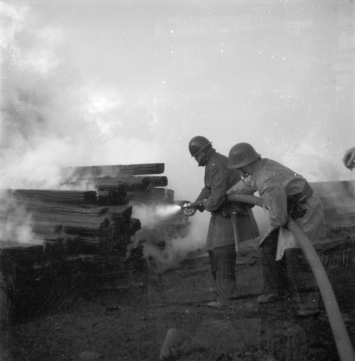 Brand i Olssons lumpupplag vid vagnsverkstaden. Maj 1947.