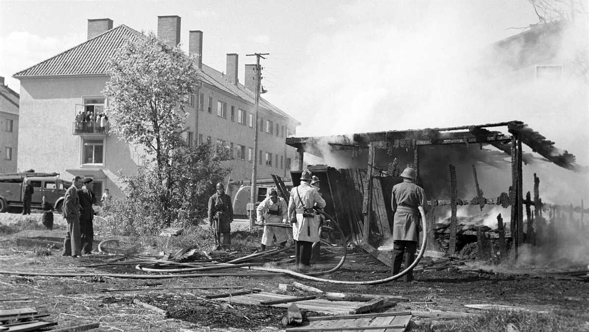 Eldsvåda på Brändströmsgatan i Gävle. Maj 1947.