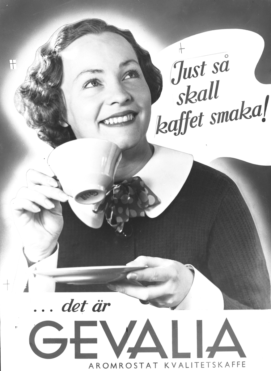 Vict. Th. Engwall & Co, företaget bakom varumärket Gevalia. "Just så skall kaffet smaka! ...det är GEVALIA aromrostat kvalitetskaffe"