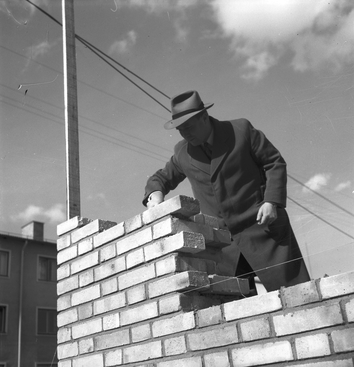Tekniska Gymnasiet inmurning av dokument. 25 april 1949.
