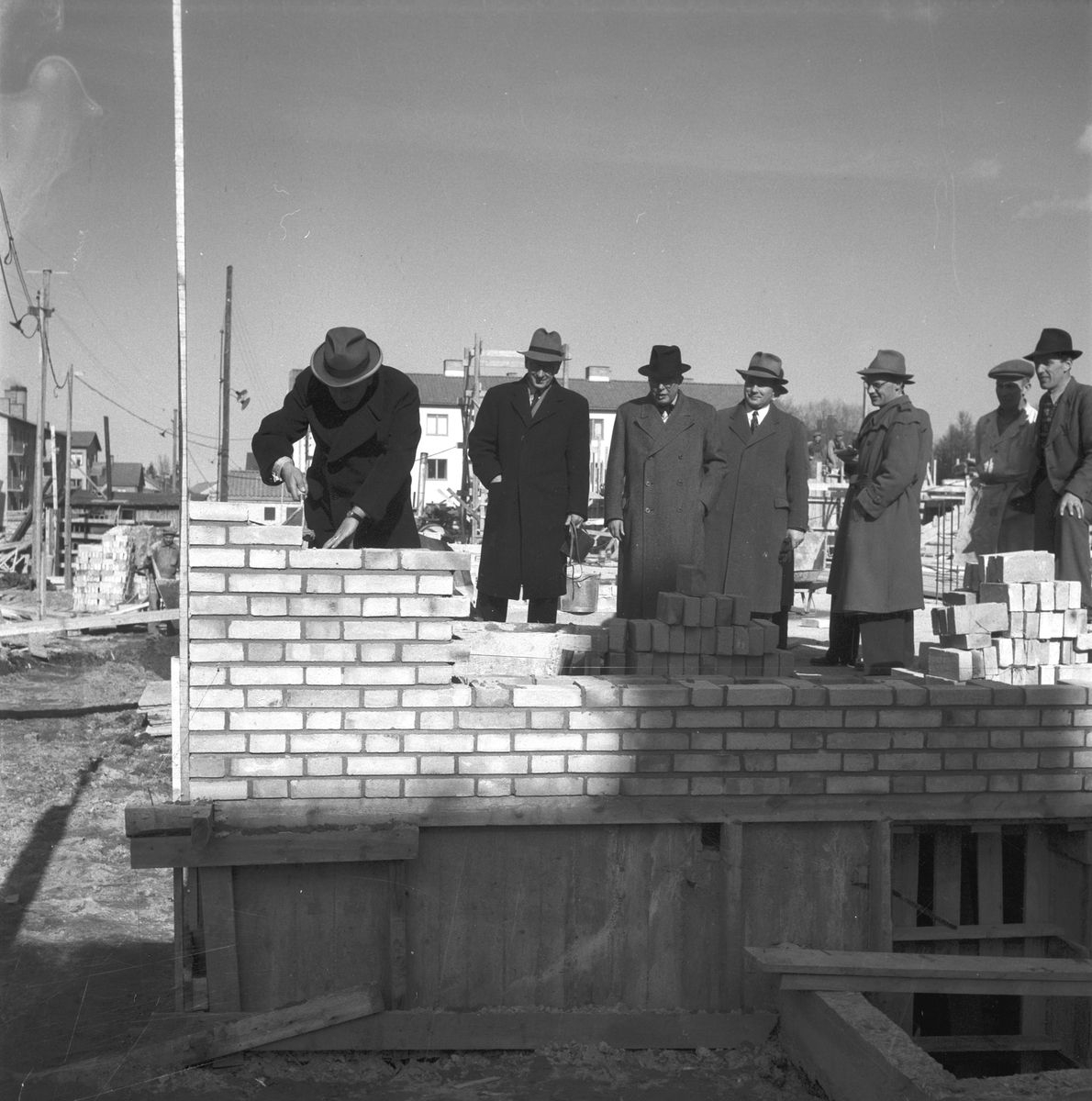 Titel: Tekniska Gymnasiet inmurning av dokument. 25 april 1949.