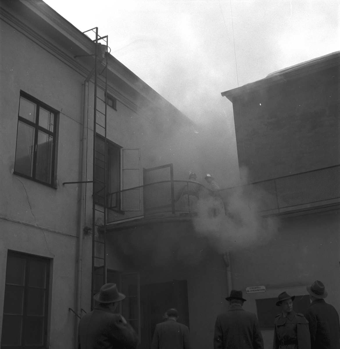 Nordströms Fruktaffär. Eldsvåda i lagret. 7 februari 1950.
