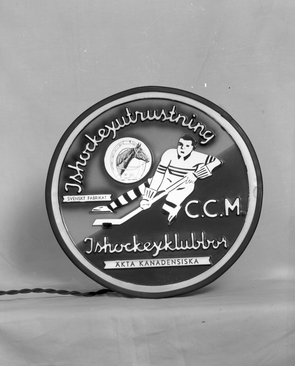 Malmbergs startades 1905 av Elof Malmberg. Blev en av Sveriges ledande producenter av artiklar för idrott, jakt, fiske, skytte och friluftsliv. På bilden ishockeyutrustning C.C.M ishockeyklubbor