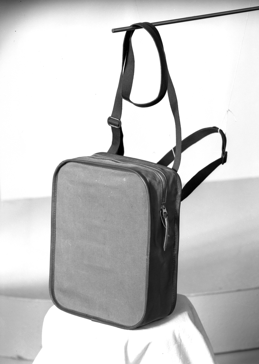 Malmbergs startades 1905 av Elof Malmberg. Blev en av Sveriges ledande producenter av artiklar för idrott, jakt, fiske, skytte och friluftsliv. På bilden en axelväska