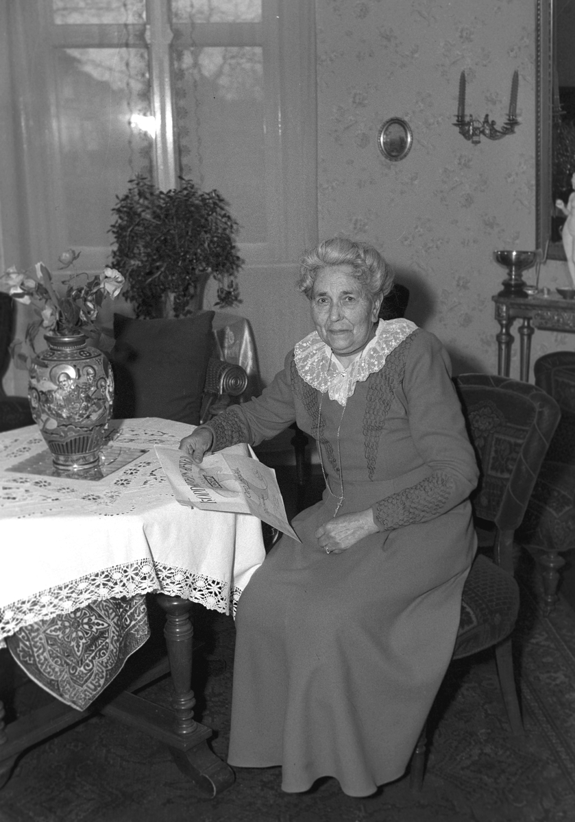 Fru Lindwall (maka till komponisten av "Konvaljens avsked"). Reportage för Aftonbladet. 4 april 1949. Redaktör Säfström.