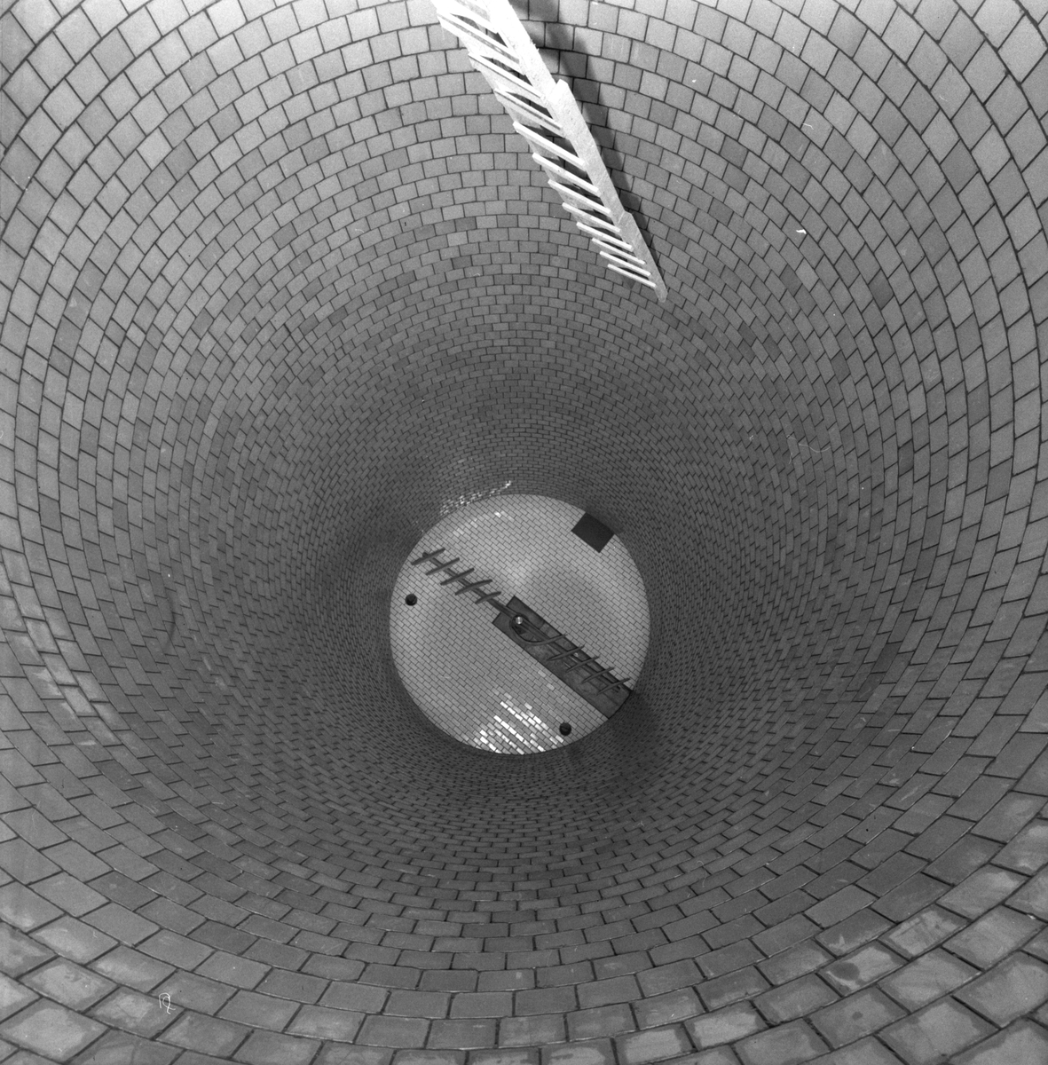 Stege ner i en "brunn" på pappersbruket. Korsnäs AB. Den 9 september 1961