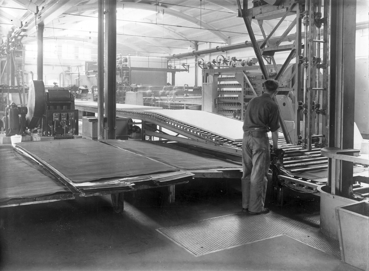 Fotokopia av interiör från sågverk, 24 april 1946. Svenska Sågverksindustriarbetarförbund.