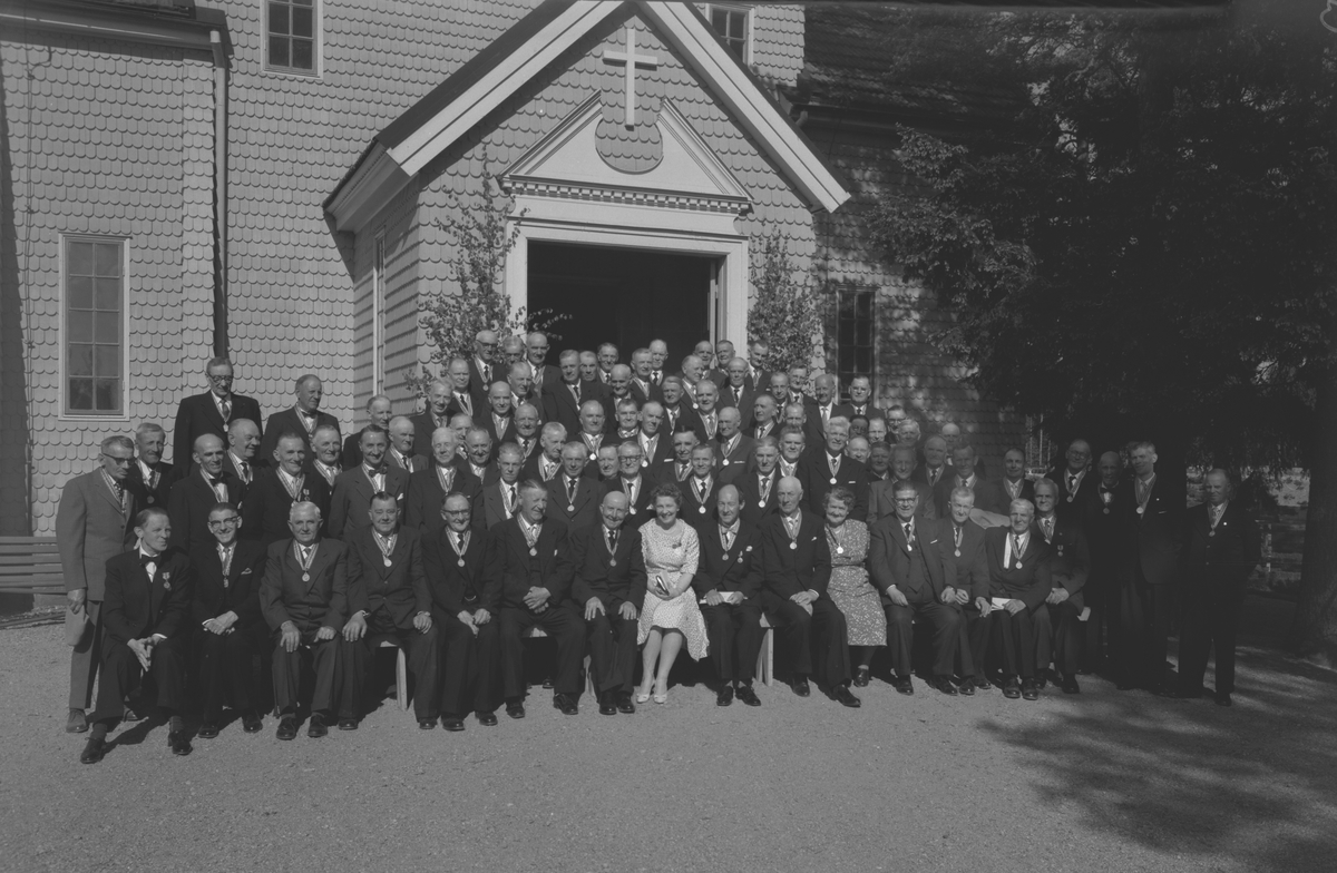 Korsnäsanställda framför Bomhus Kyrka den 8 juni 1958