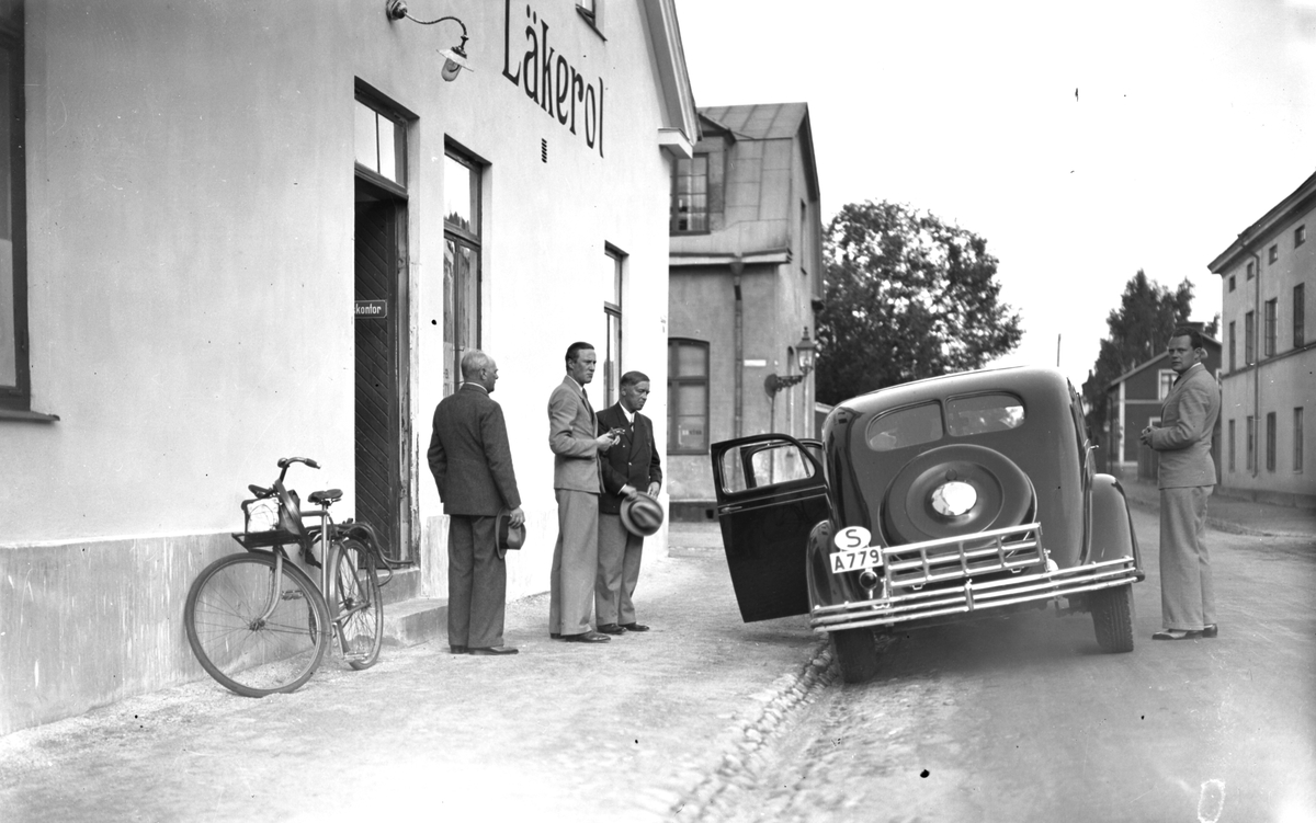 Möte på trottoaren utanför Ahlgrens Tekniska Fabrik.