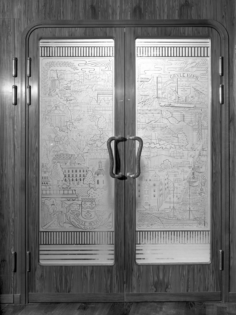 Grand Central Hotell, Gävle. Glasdörr. Juni månad 1946