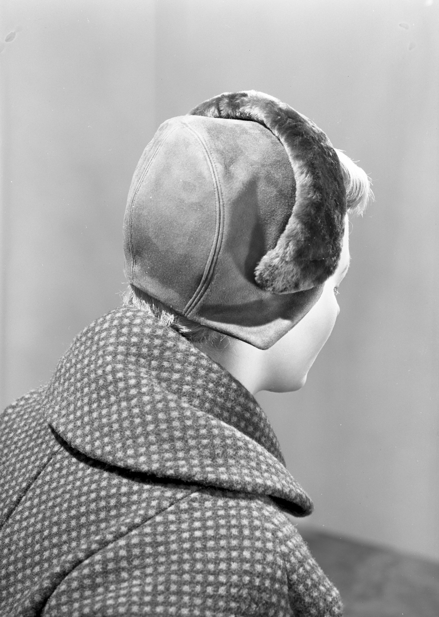 Skinnmössa och kappa. L. Haglund & Co, med varumärket Elhå. Grundades som en affär för mössor, hattar och pälsvaror av Lars Haglund 1872. Den 16 augusti 1951