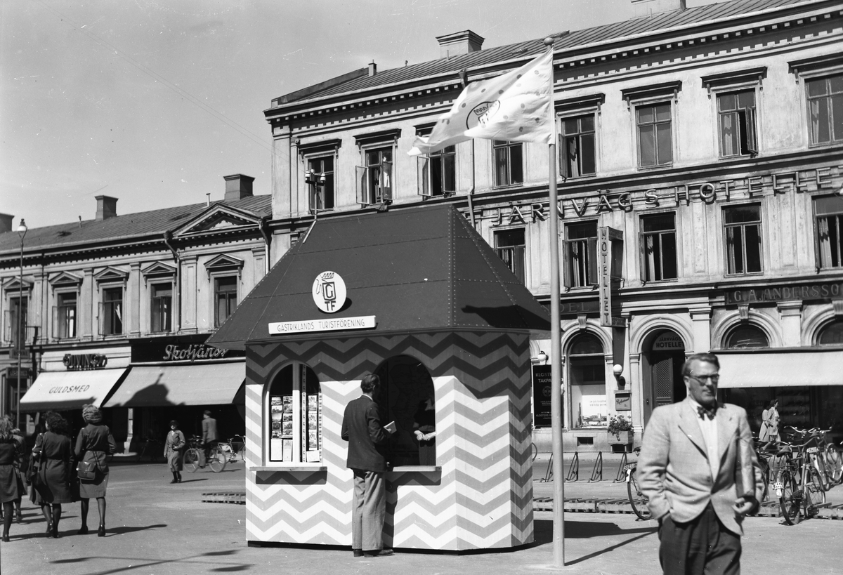 Gästriklands Turistförening kiosk på Centralplan. Juni 1945