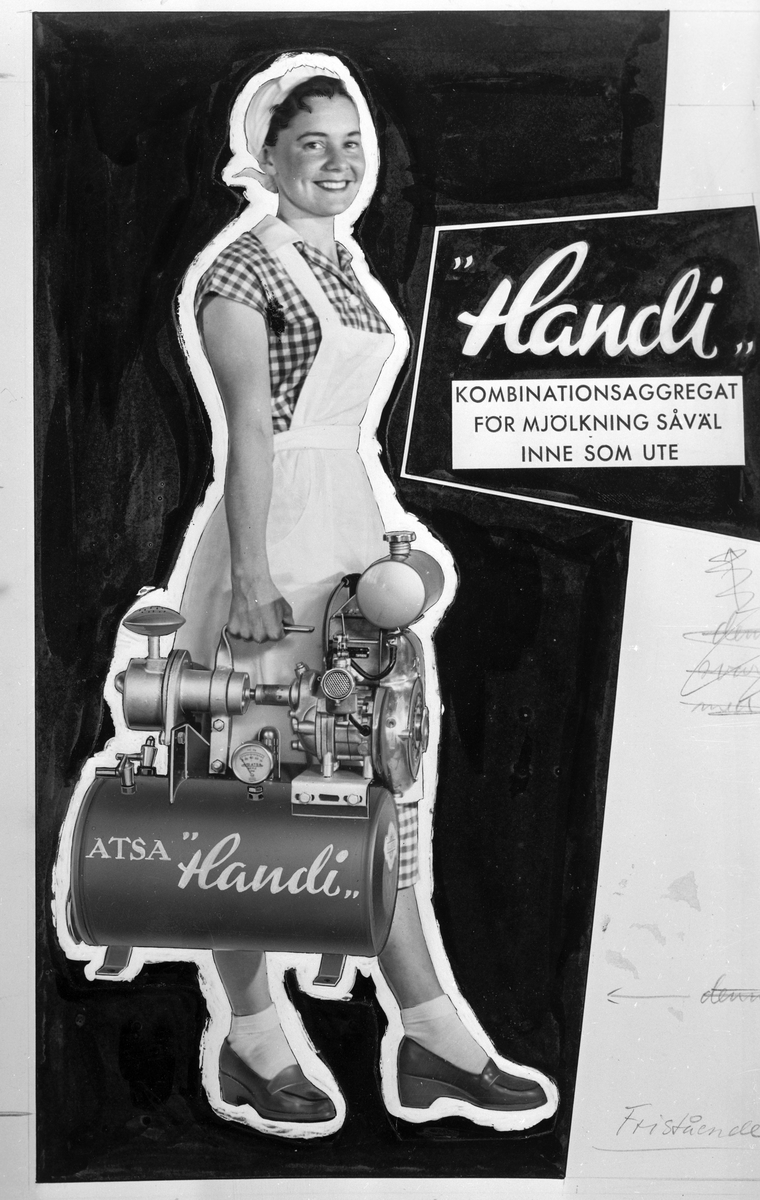 ATSA AB. "Handi, Kombinationsaggregat för mjölkning såväl inne som ute". Den 5 augusti 1954