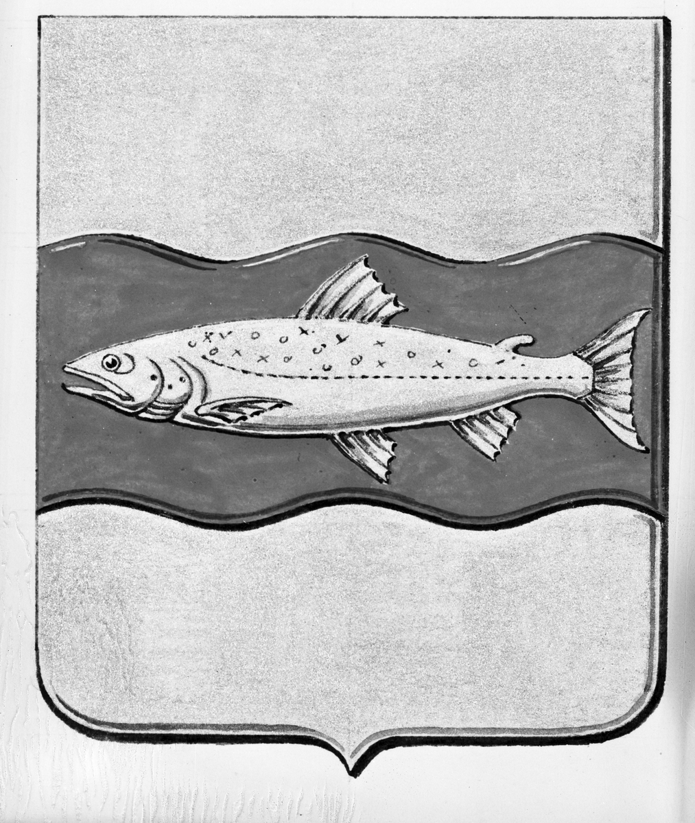 Skiss av kommunvapnet för Älvkarleby. Kommunalkontoret Skutskär.