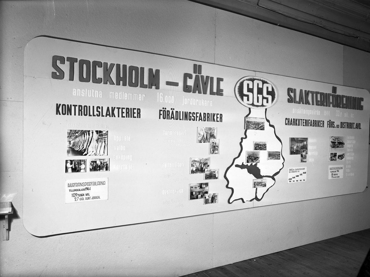 Ludvigsbergs skola. "Stockholm-Gävle Slakteriförening, SGS". Valboutställningen. 19 juli 1945.