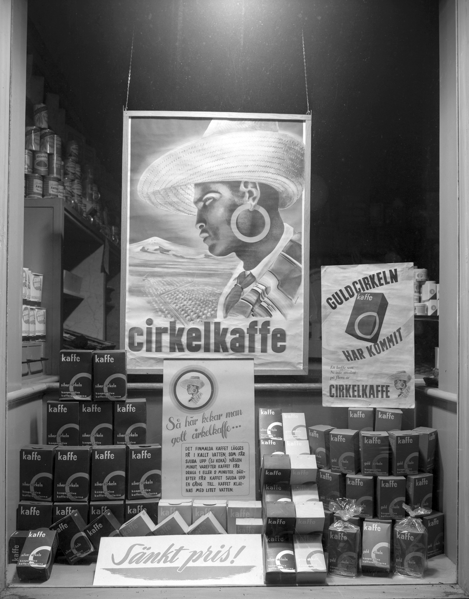 Skyltning med Cirkelkaffe, 1946. Konsum Alfa, Forsby.