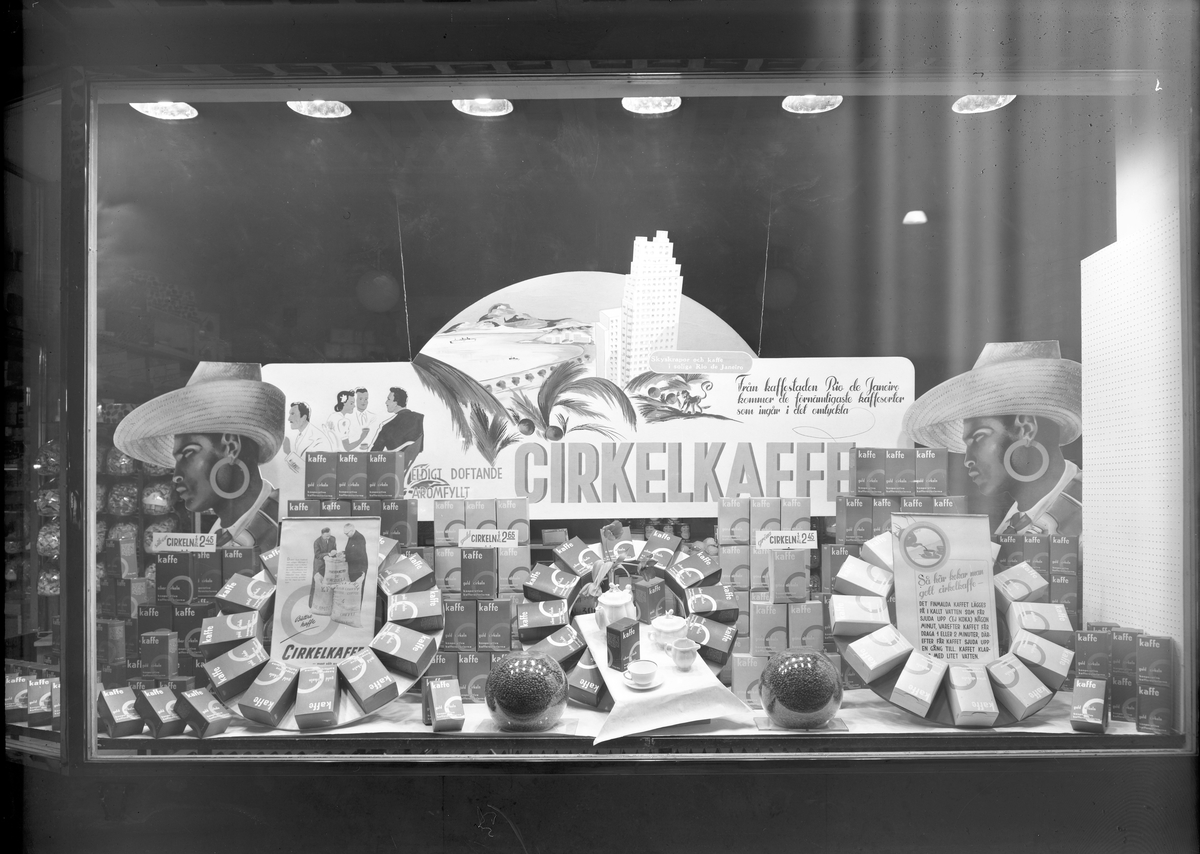 Skyltning med Cirkelkaffe, 1946. Konsum Alfa, Varuhuset, Drottninggatan 19, Gävle.