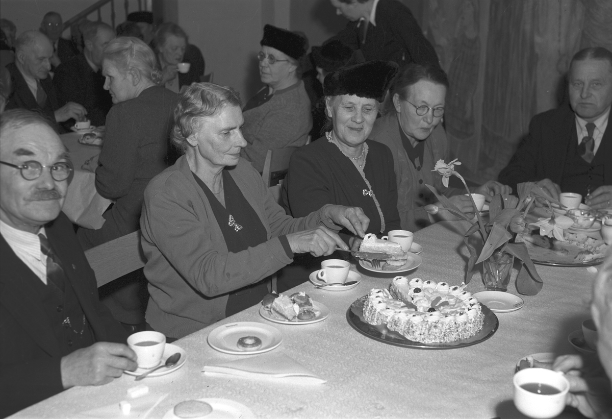 Pensionärerna på fest i Folkets Hus. 15 mars 1949. Reportage för Arbetarbladet.
