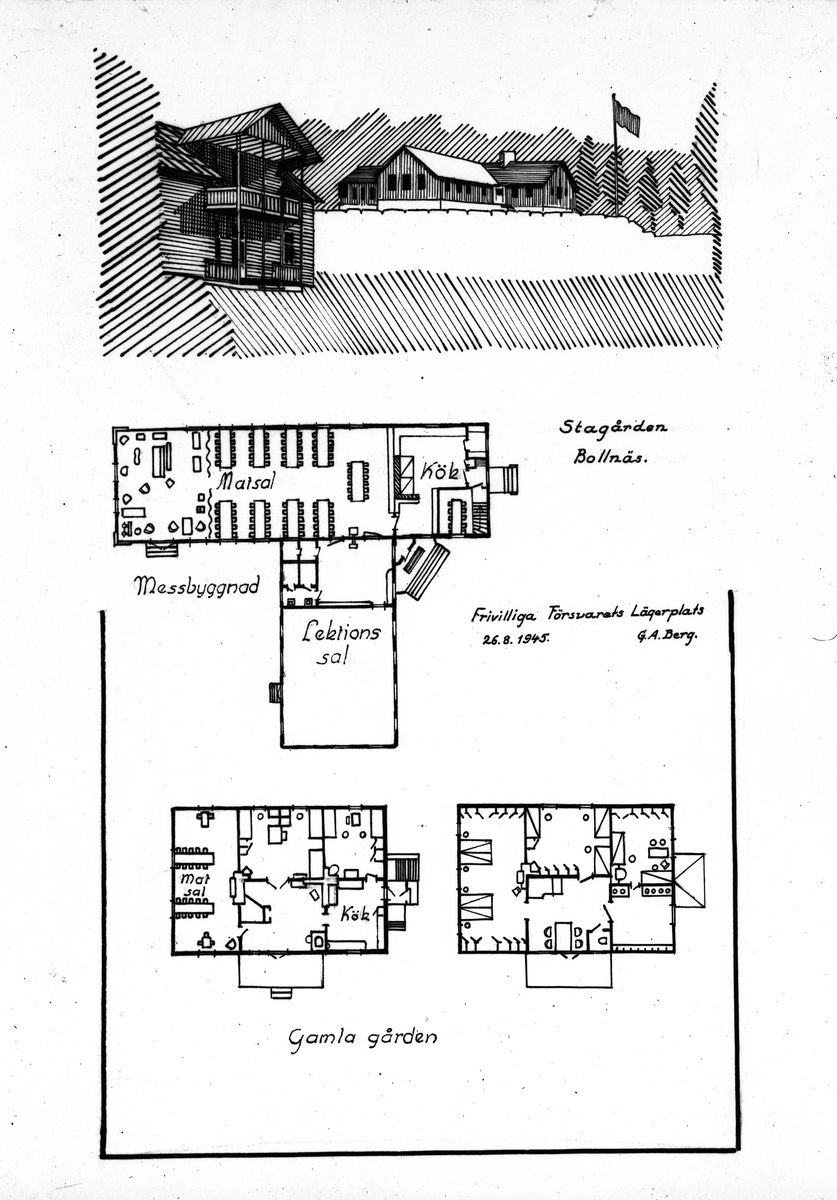 Ritning av Stagården, Bollnäs. November 1945. Leverars till Fru M. Ekman.