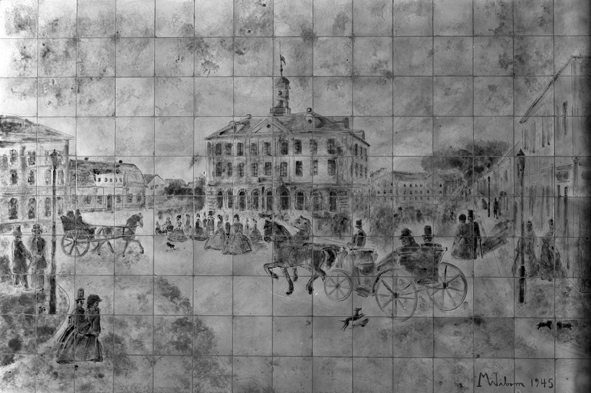 Dekorering på Centralcaféet av Maggi Wibom. December 1945. Centralcaféet, Centralpalatset, Gävle.