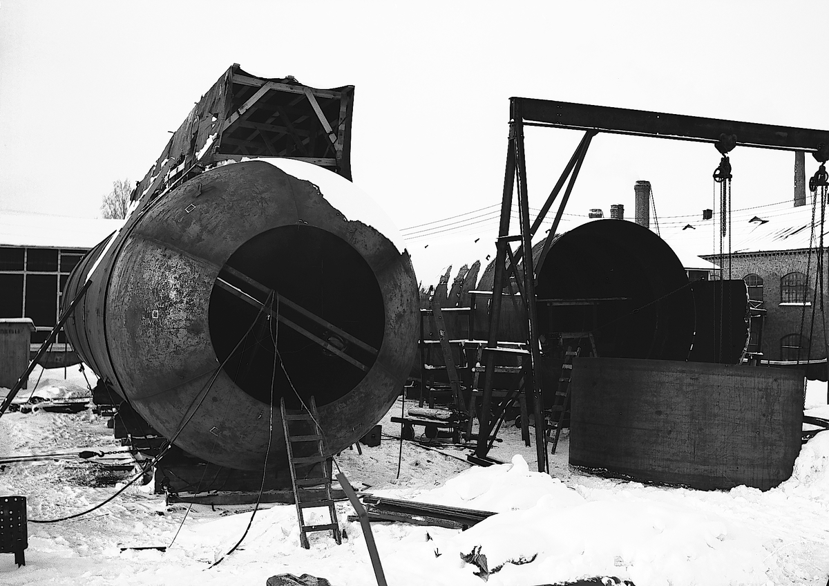 Februari 1942. Gävle Varv. Montering av gasklocka