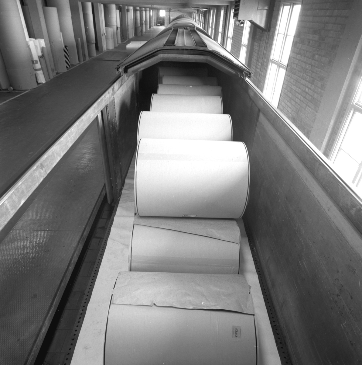 Titel: Lastning av pappersrullar på järnväg. Korsnäs AB. Den 11 april 1967