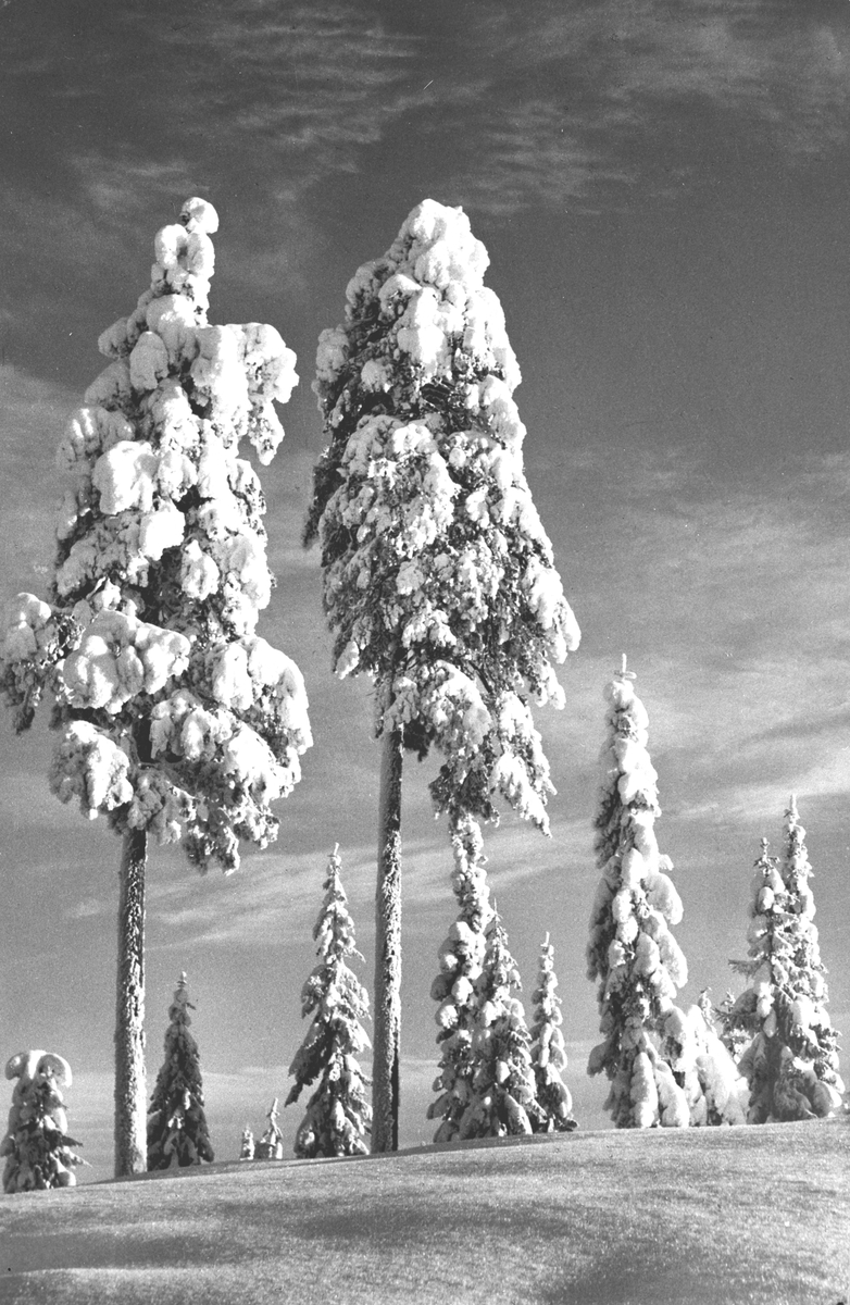 Tallar och granar, vintertid. Korsnäs AB. Kopia. Den 15 September 1958