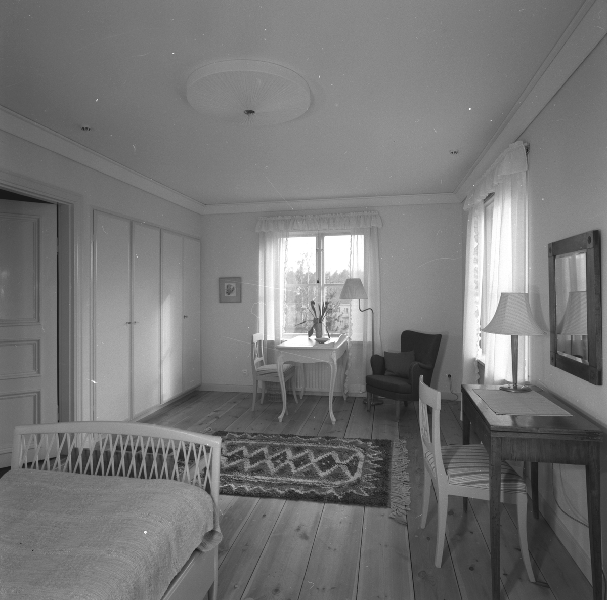 En av sovrummen på Holmsund Herrgård. Korsnäs AB. Den 20 april 1960