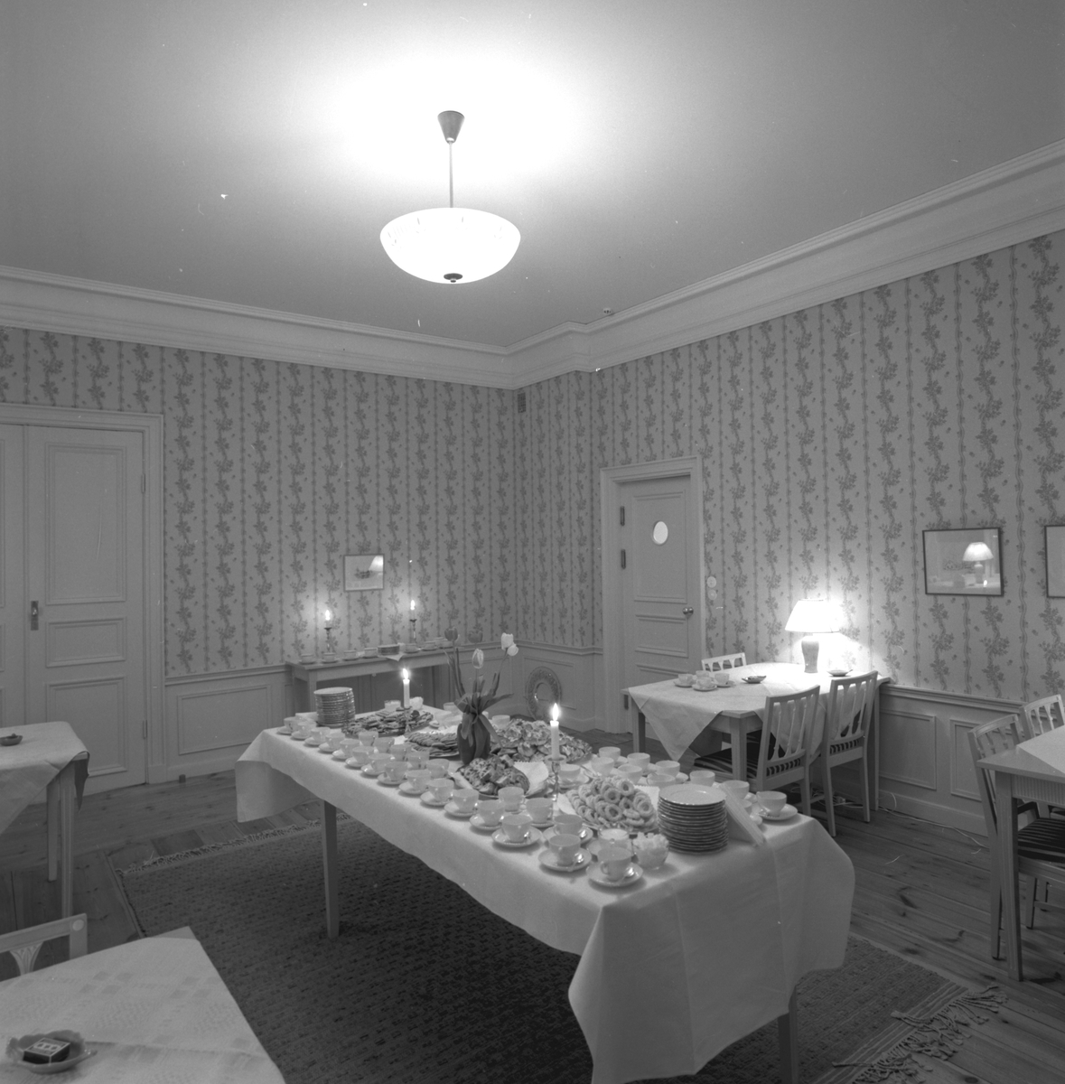 Framdukat i matsalen på Holmsund Herrgård. Korsnäs AB. Den 28 april 1960