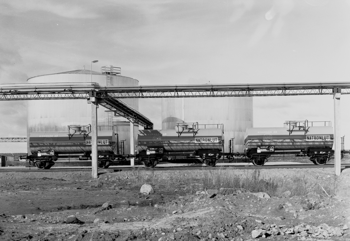 Järnvägsvagnar med natronlut. Klorfabriken. Korsnäs AB. Den 5 oktober 1957