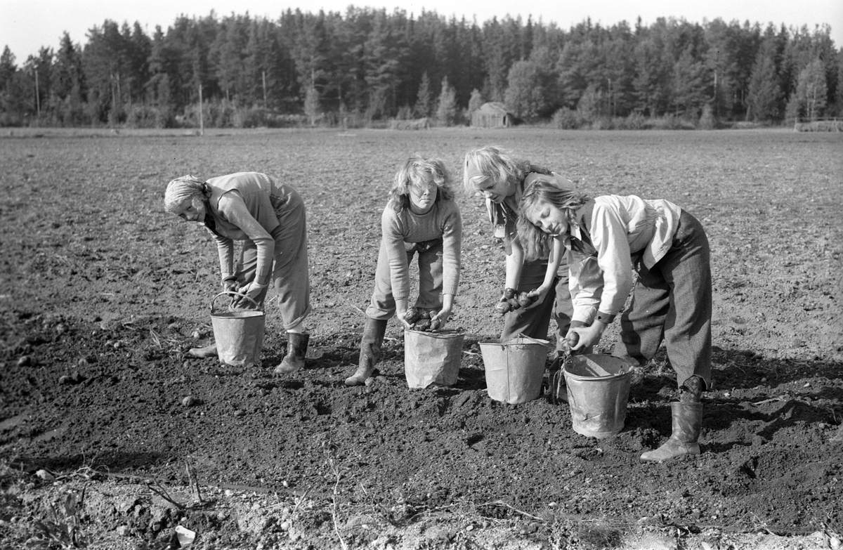 Potatisupptagning i Hille. 26 september 1946. Reportage för Arbetarbladet.