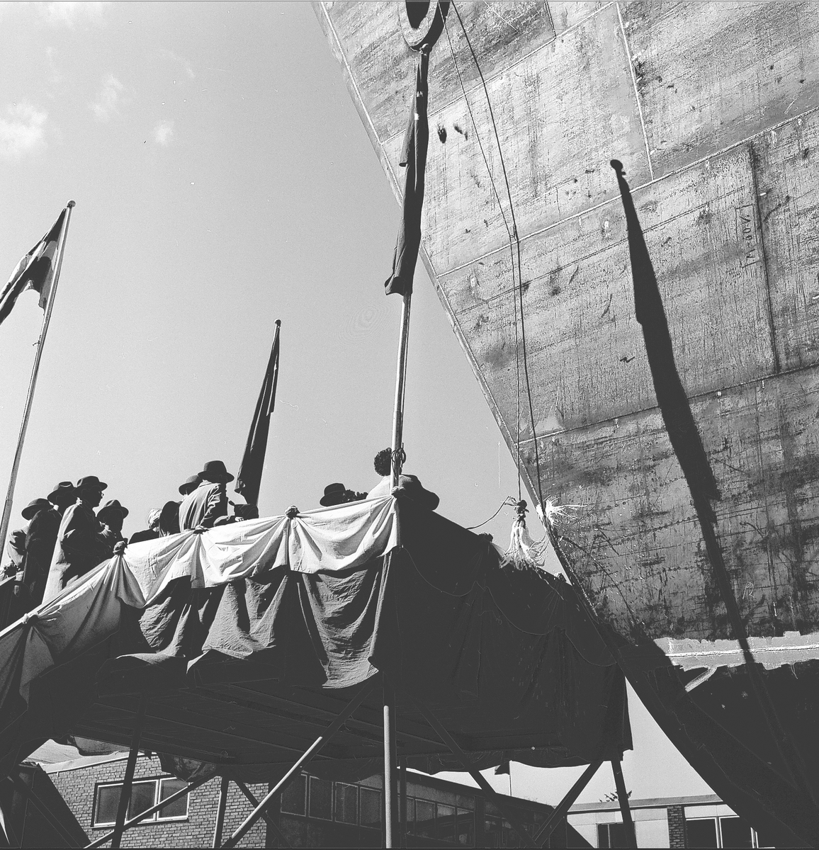 Den 18 april 1961. Gävle Varv. Stapelavlöpning av M/S 109