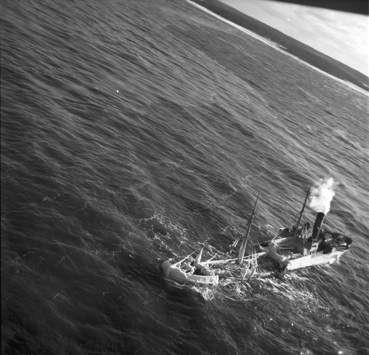 Fartyget Stellas haveri utanför Slangrevet. Flygbilder. 2 mars 1949.
