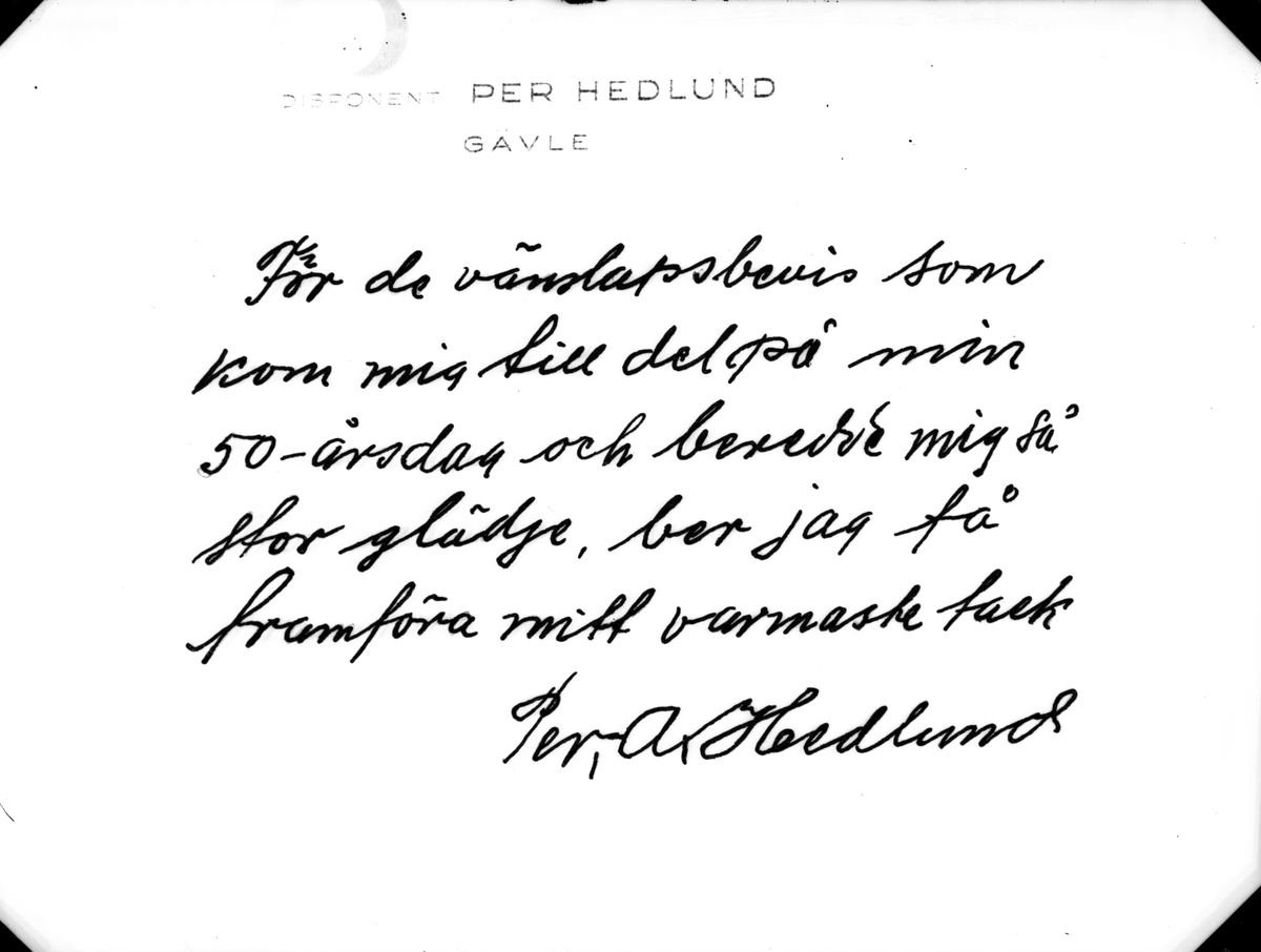 Disponent vid Gävle Varv, Per Algot Hedlunds 50-årsdag. Januari 1945.