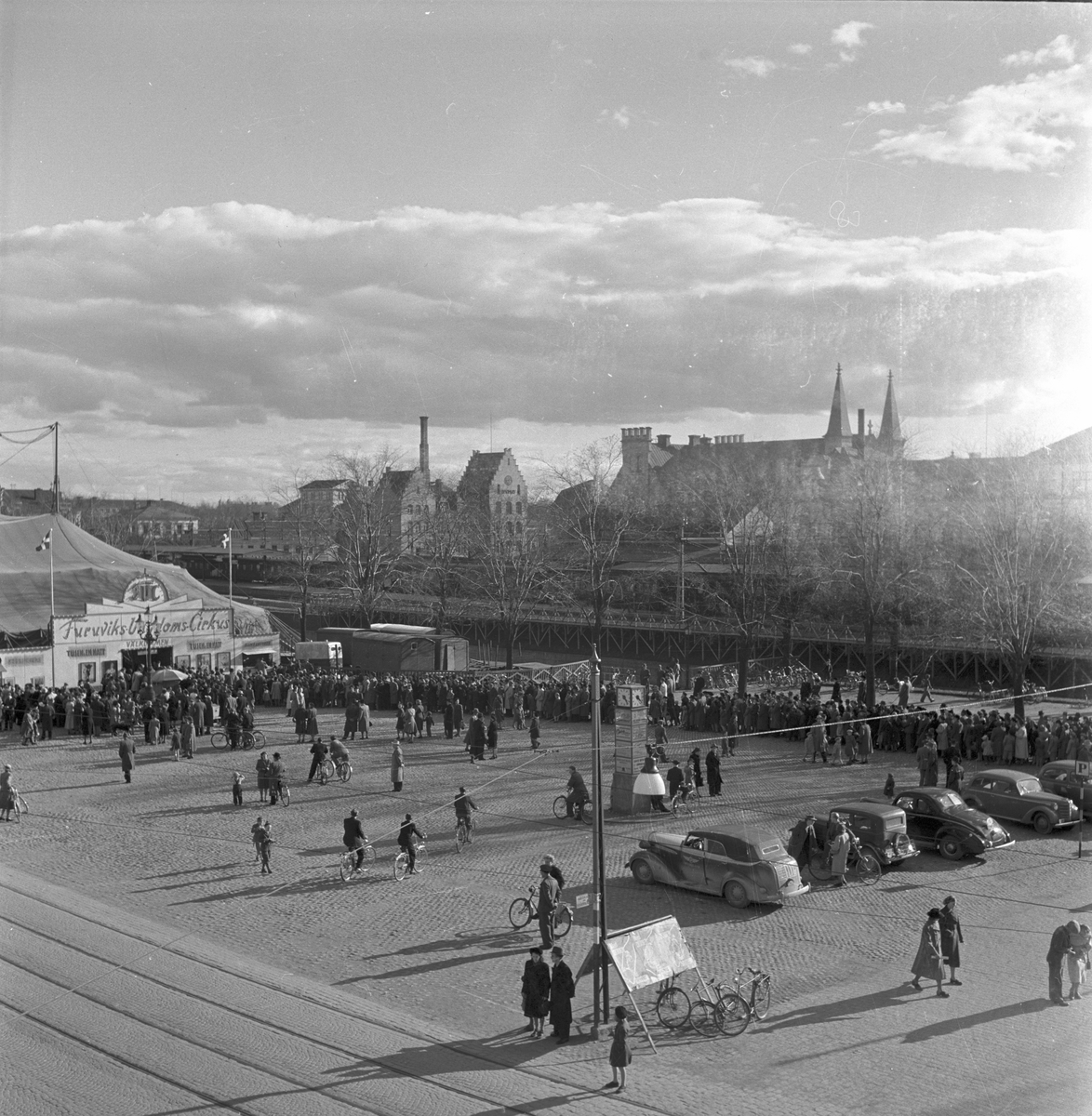 På Fisktorget/Hamntorget finns Cirkustältet med Furuviks Ungdomscirkus."Tusen & en natt". 22 april