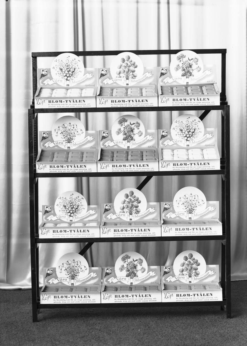 Elfströms Tekniska affär. Foto av tvålställ. 7 februari 1938. Elfströms Tekniska Fabriks AB, Atlasgatan
