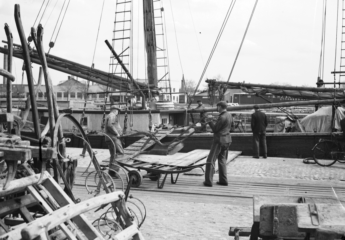 Lastning av jordbruksredskap. 1 Juni 1942. "Jernhandlaren" tidning, Drottninggatan 68, Stockholm