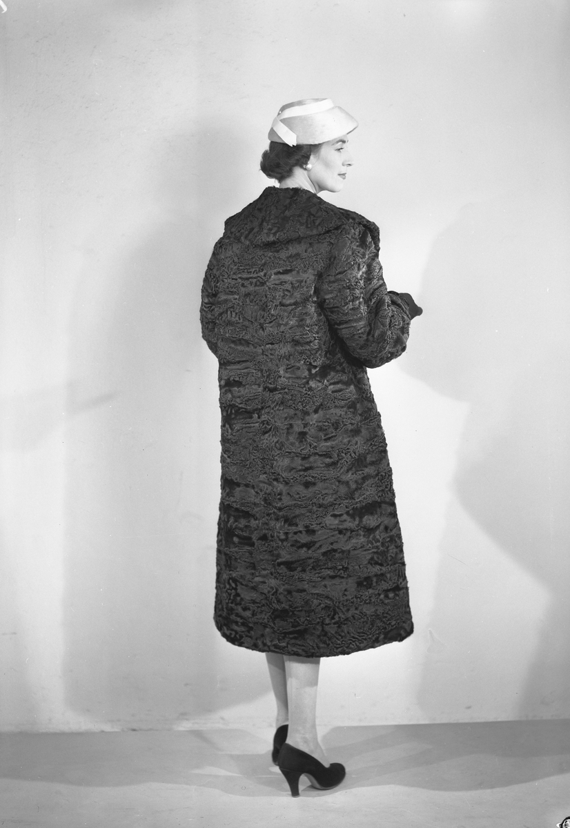 Pälskappa och hatt. L. Haglund & Co, med varumärket Elhå. Grundades som en affär för mössor, hattar och pälsvaror av Lars Haglund 1872.