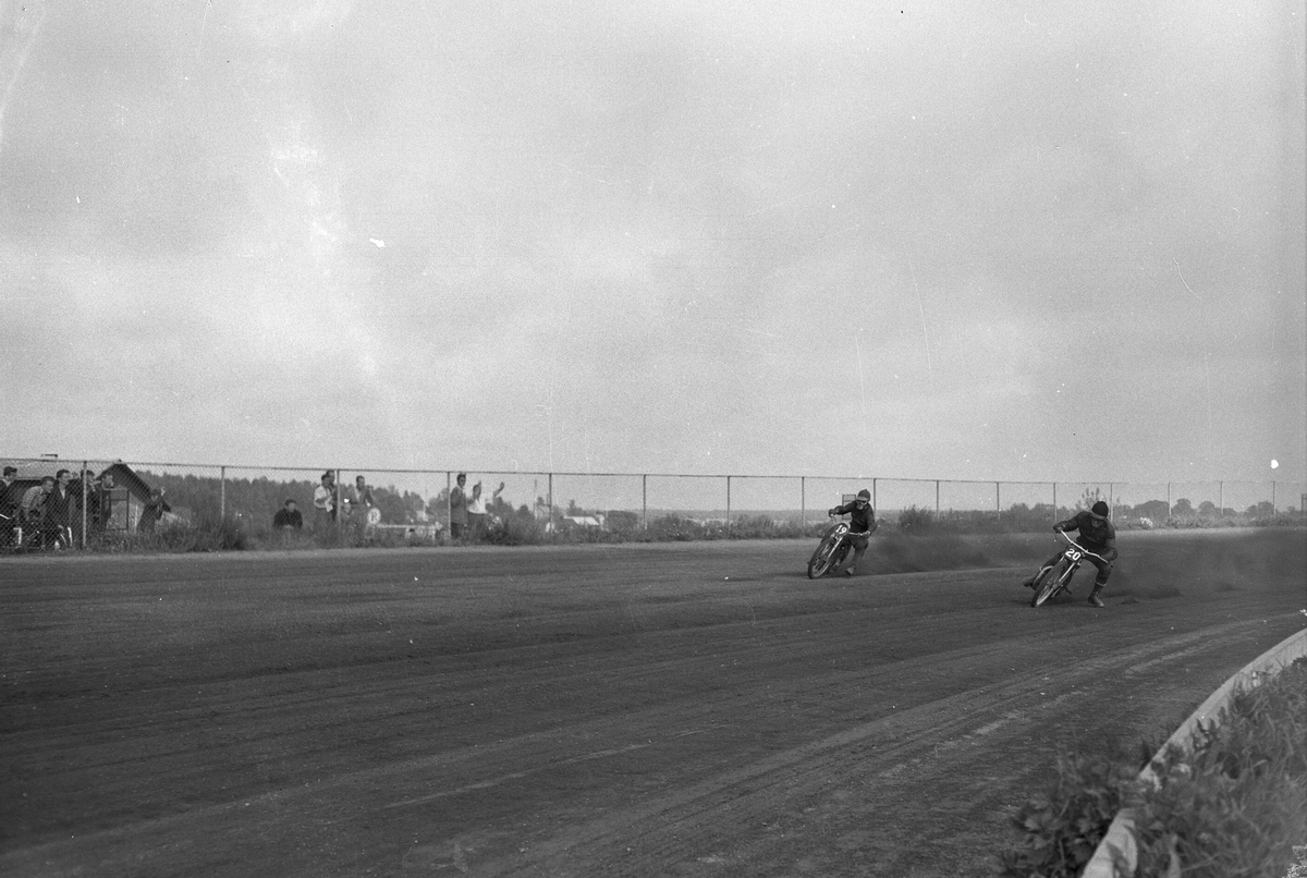 Motortävlingar "Speedway" på Travbanan. 16 augusti 1953.