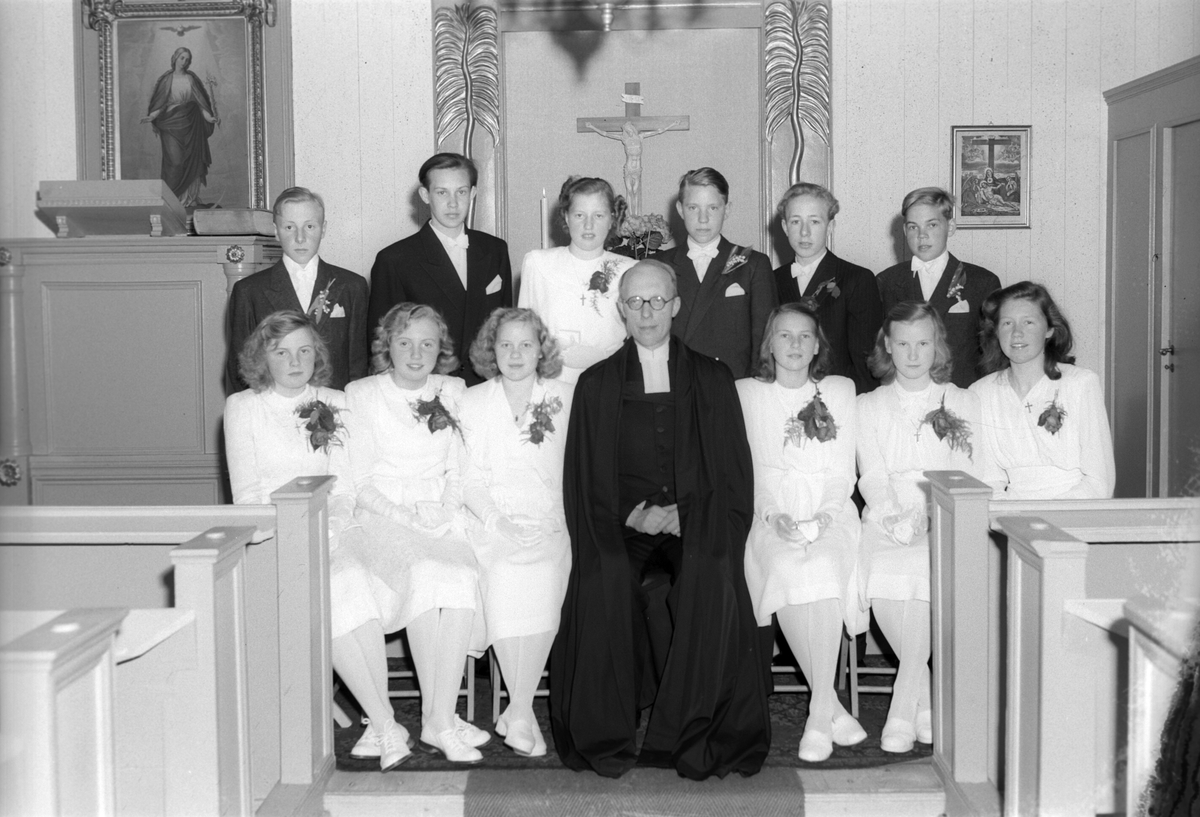 Konfirmation i Böna Kapell. 8 maj 1948. Pastor S. Wiklund.