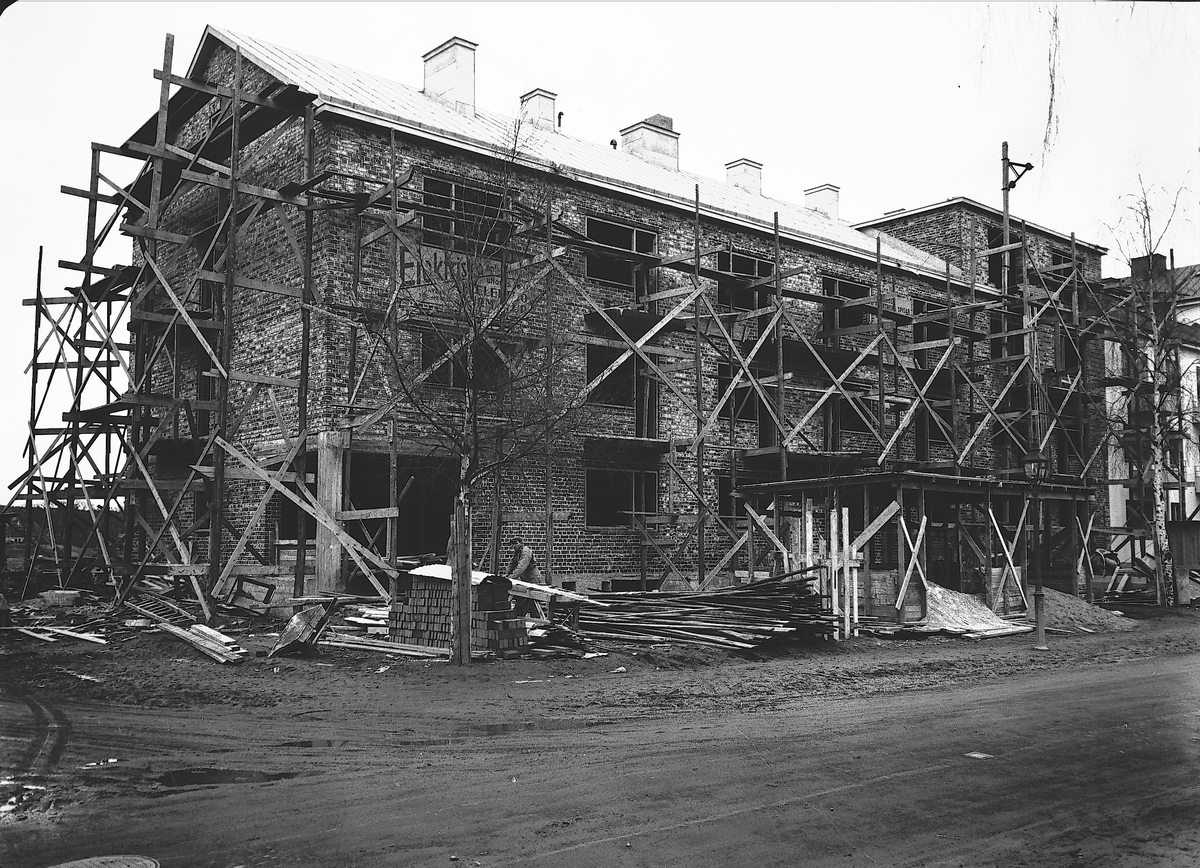 Nybyggnation av bostadshus på Valbogatan 31. Norrtullsgatans mynning skymtar i vänsterkanten.