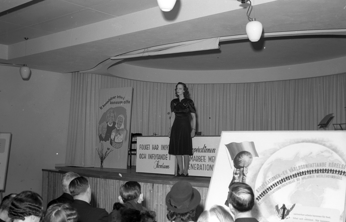 Konsum Alfa, fru Björkman sjunger. 11 mars 1947.