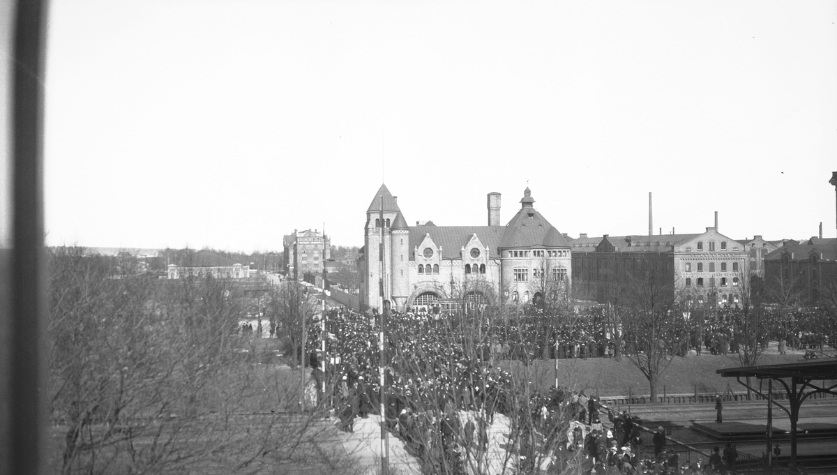 Kommer från Brynäs Fältskärsgatan till Drottninggatan, som går över spåren mot centrum, innan tunneln byggdes.
