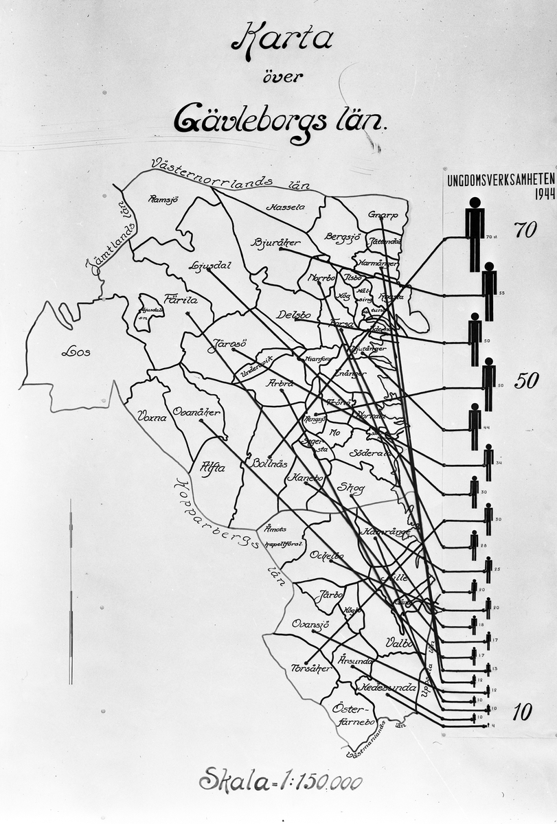 Kopia av karta över Gävleborgs län. Januari 1945. Hushållningssällskapet.