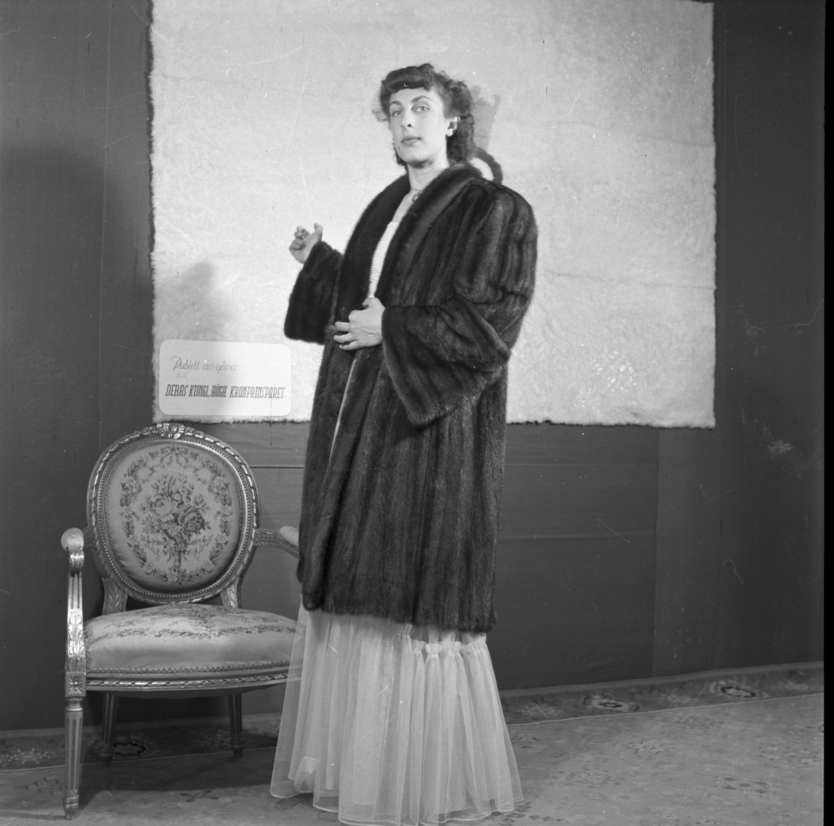 Mannekänguppvisning för Bergströms päls vid Gävleutställningen på Travbanan eller Folkparken med anledning av Gävle stads 500-årsjubileum