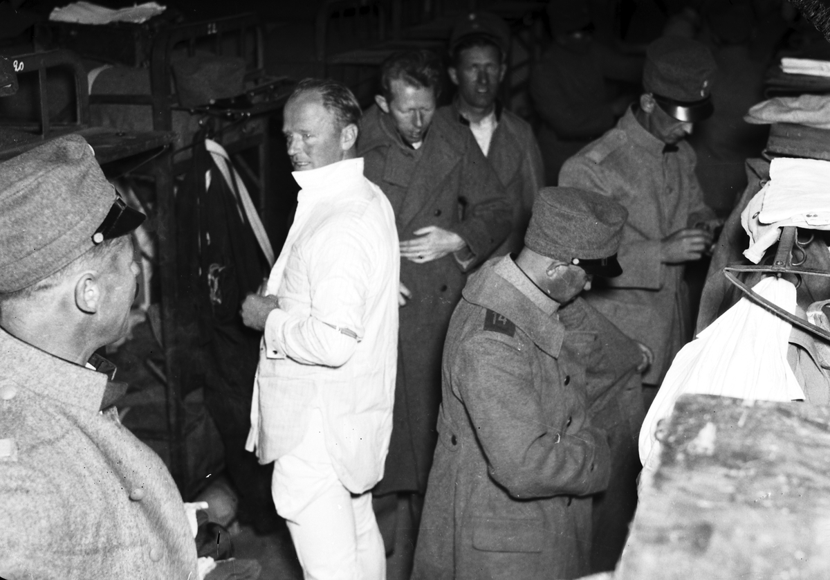 Landstormen rycker in, 1939. Armén delades fram till 1941 in i bevärings- och landstormsmän. Landstormen var de över 35 år, av de värnpliktiga.