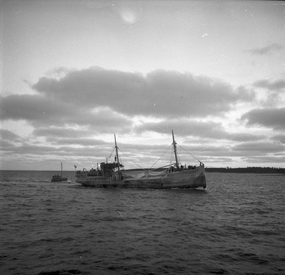 Bildreportage, nödställd båt "Hans Boye". 8 januari 1954.