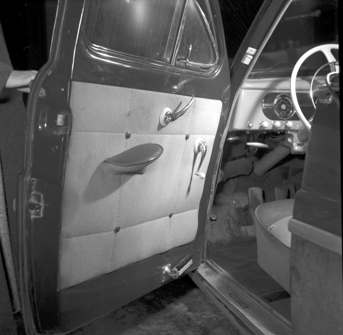 Fotskrapa på bil. Januari 1954. Gefle Mekaniska Verkstad, Tredje Tvärgatan, Brynäs