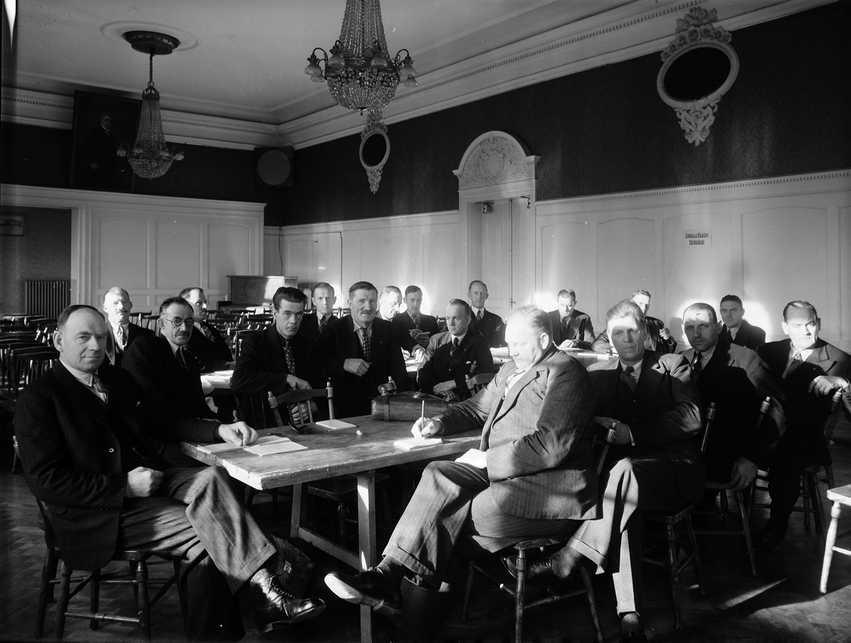 grupp av sammanträde i Folkets hus
