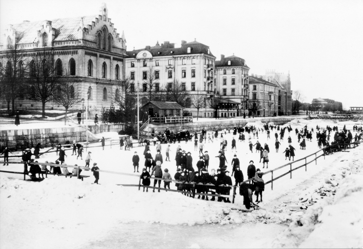 Skridskobana på Gavleån, 1920-talet. Hembygdsföreningen Gävle Gille. Medlemskort år 1975